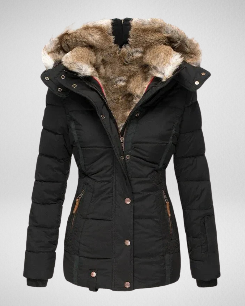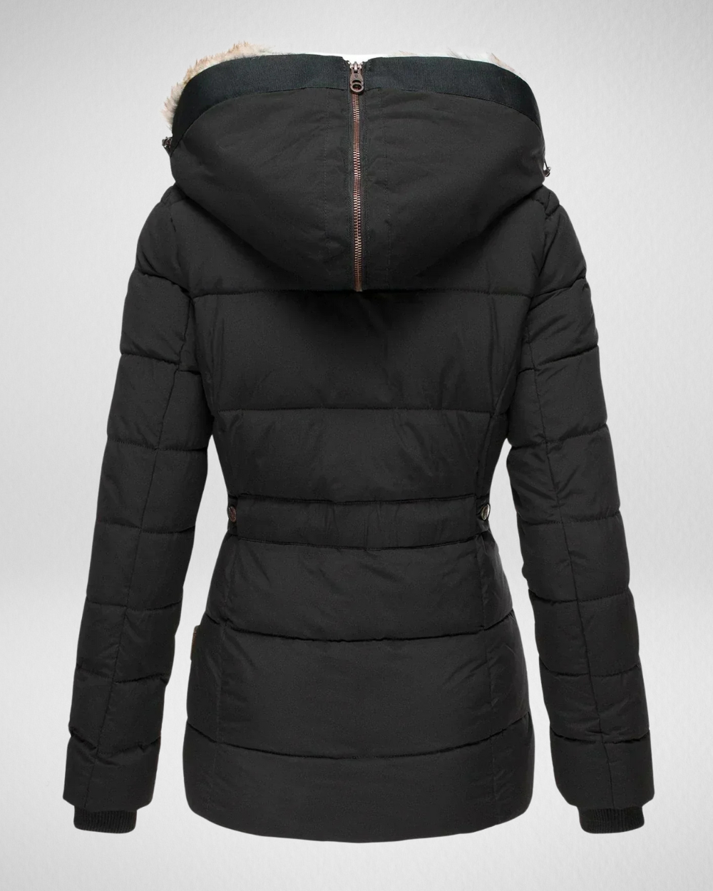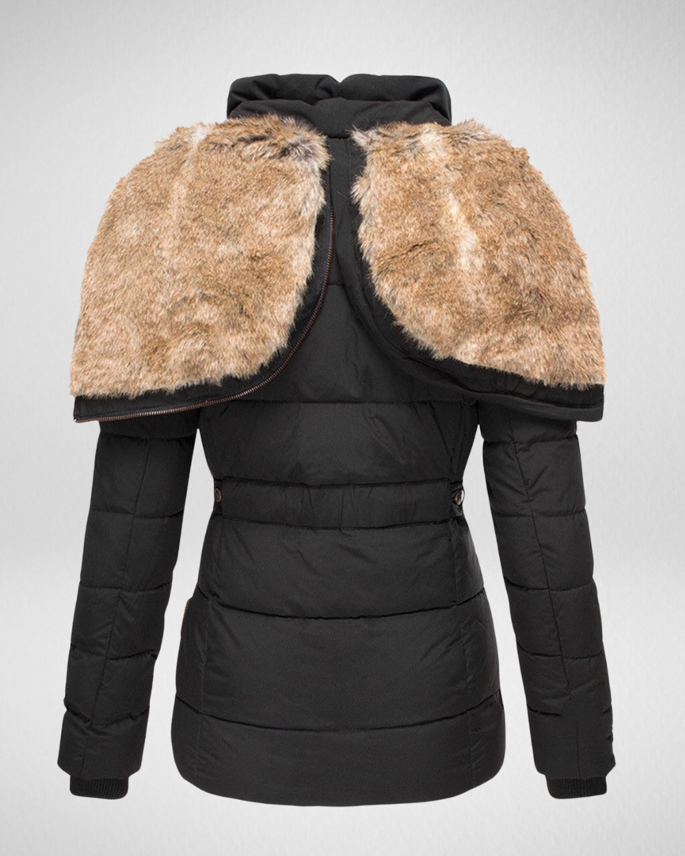 Kaptur ze sztucznym futrem: Chroni przed wiatrem i dodaje elegancji.