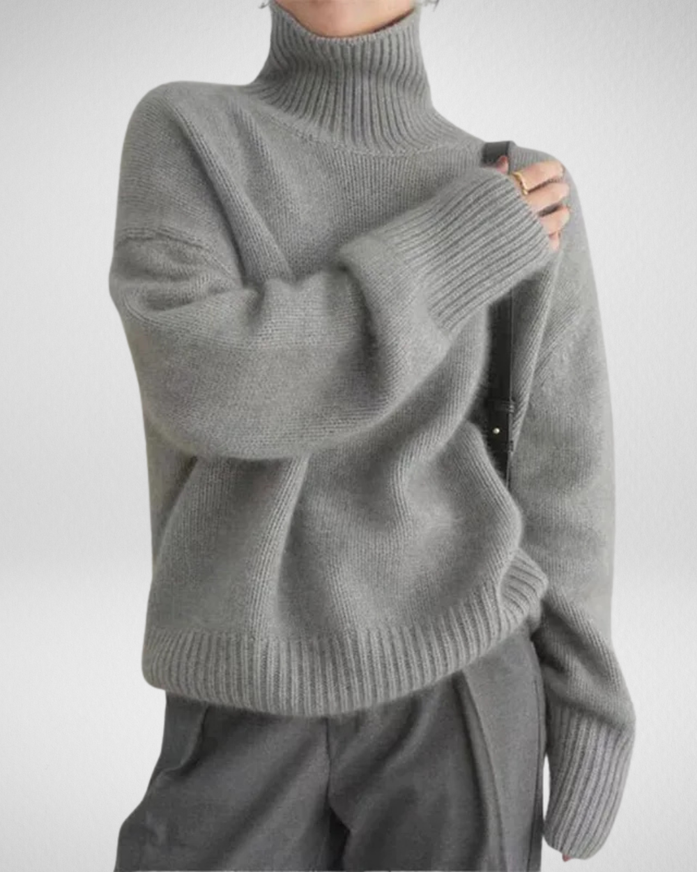 Ten klasyczny golf o luźnym kroju to idealne połączenie wygody i stylu. Wykonany z przyjemnego w dotyku materiału, zapewnia ciepło, jednocześnie pozostając lekki i komfortowy. Jego prosty, ponadczasowy design sprawia, że doskonale pasuje do każdej garderoby – zarówno w casualowym, jak i eleganckim wydaniu.