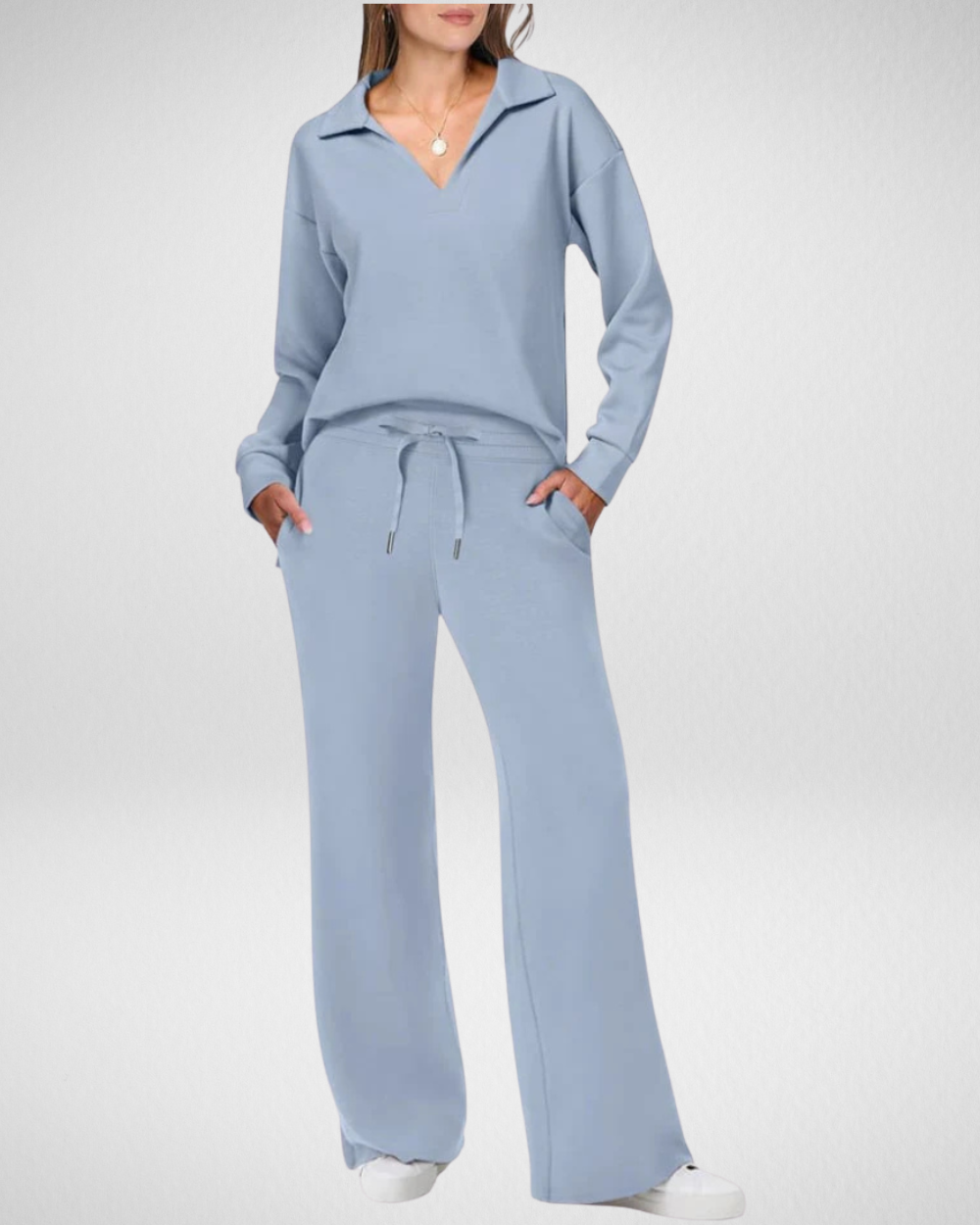 Komplet dwuczęściowy: Idealnie dopasowana bluza i spodnie tworzą spójny, stylowy zestaw.
