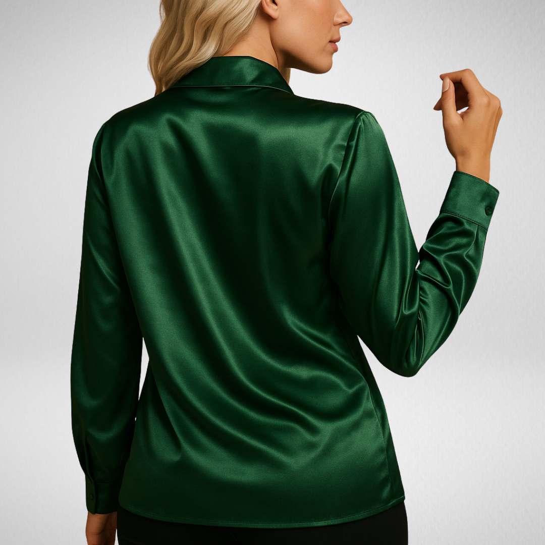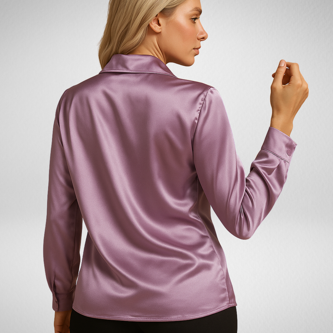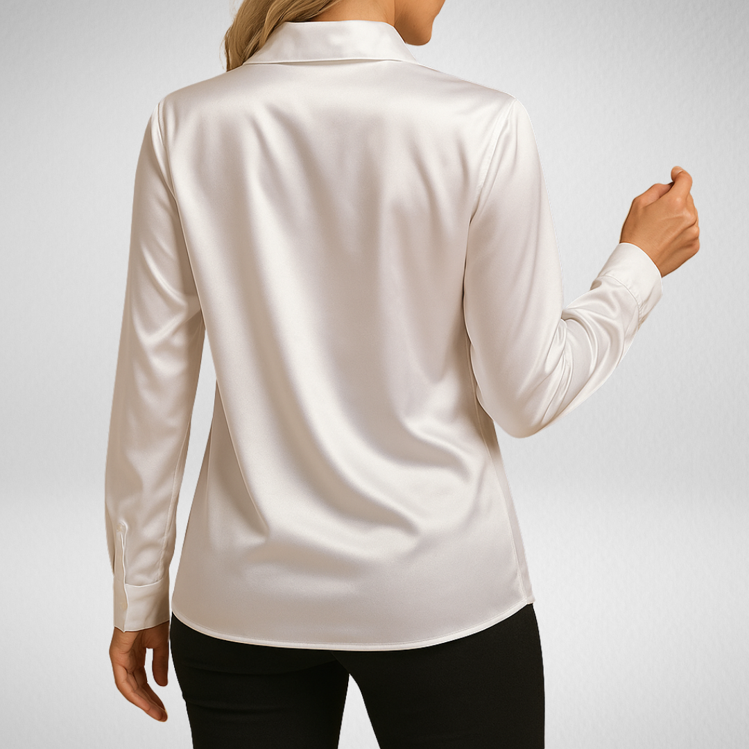 Ta elegancka bluzka damska łączy klasykę z wygodą, oferując lekki, przyjemny w dotyku materiał, który zapewnia komfort przez cały dzień. Idealna do pracy, spotkań lub codziennych stylizacji, stanowi uniwersalny element garderoby o ponadczasowym kroju i subtelnych detalach.