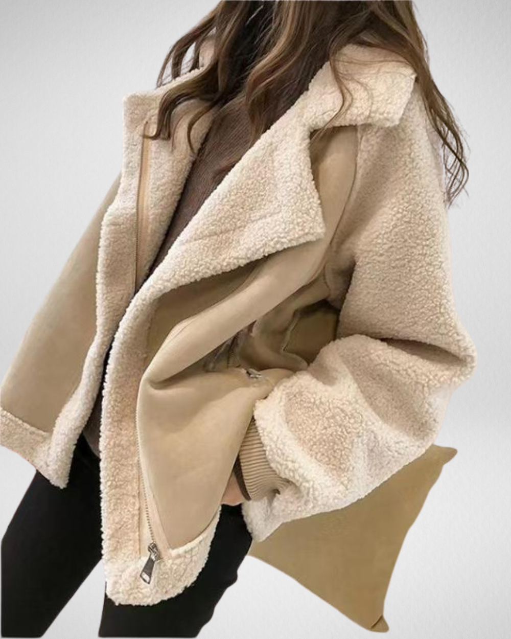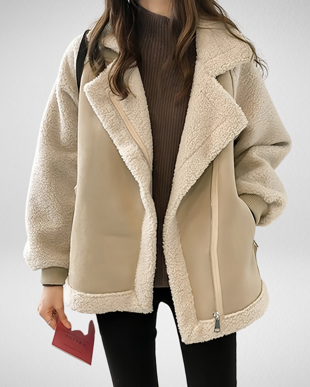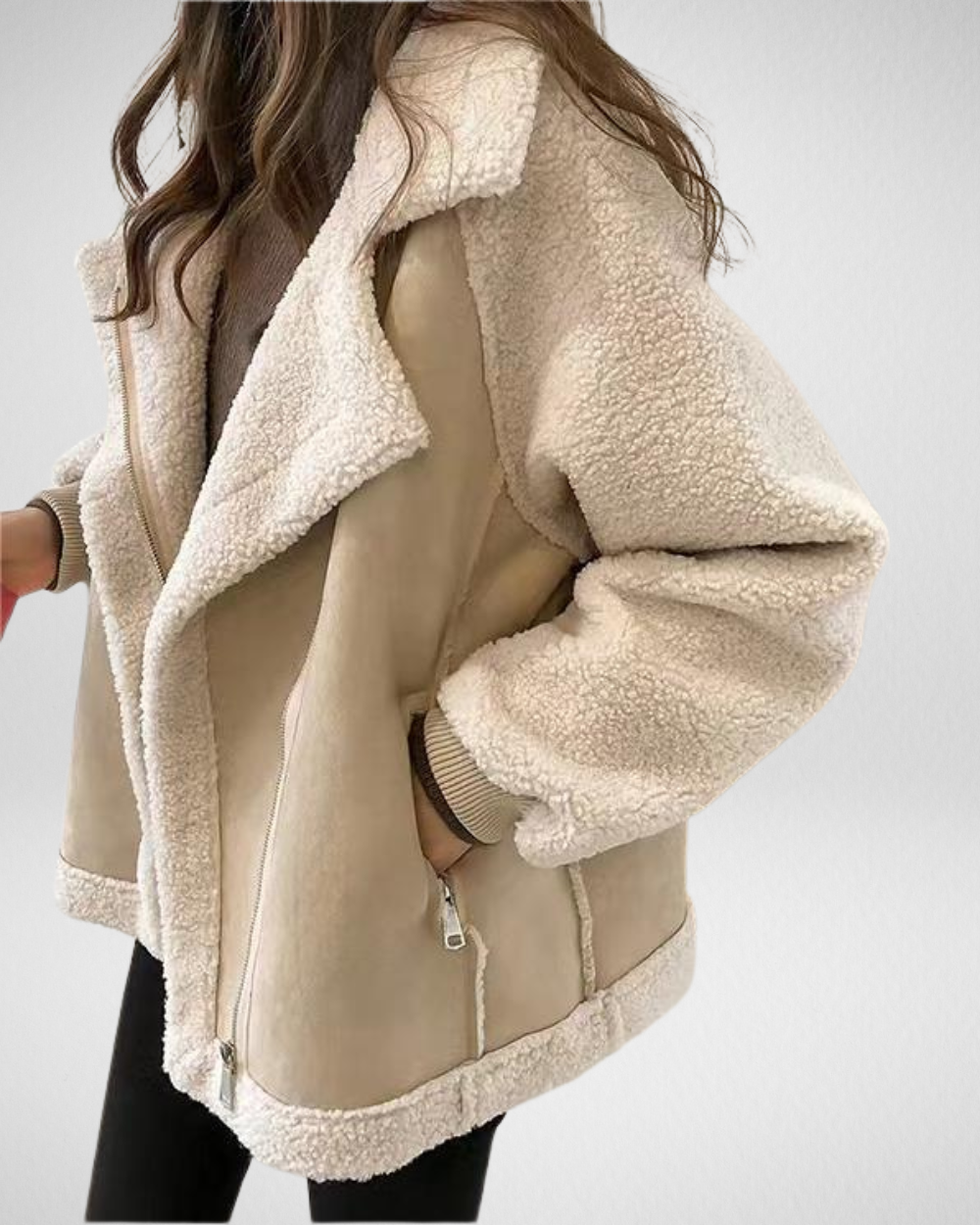 Ta modna kurtka z imitacją kożucha to idealne połączenie stylu i funkcjonalności. Wykonana z wysokiej jakości materiałów, zapewnia przyjemne ciepło i komfort w chłodne dni. Luźny krój i miękki materiał sprawiają, że łatwo dopasujesz ją do różnych stylizacji.