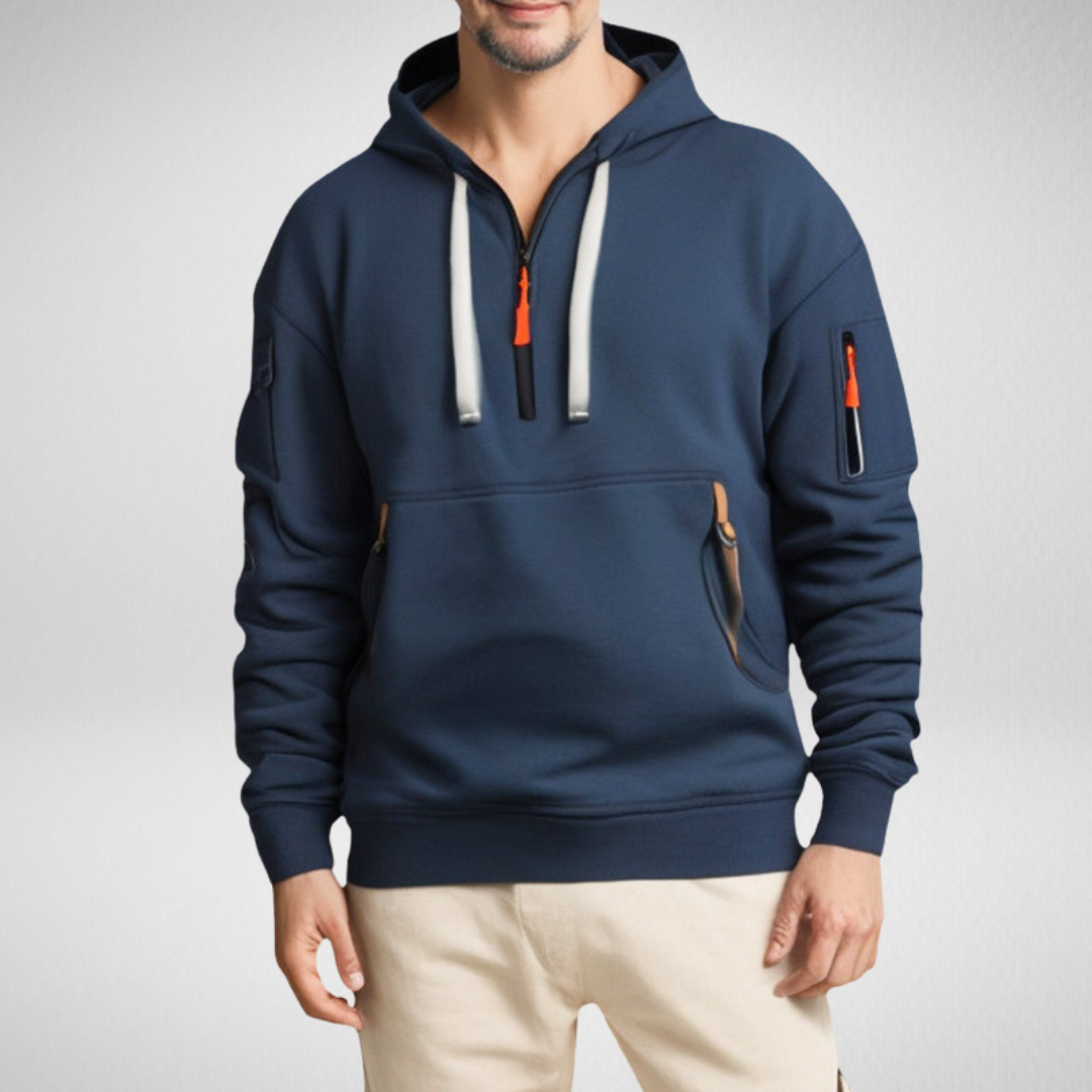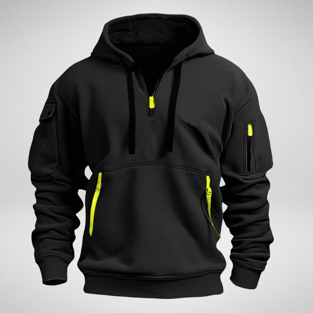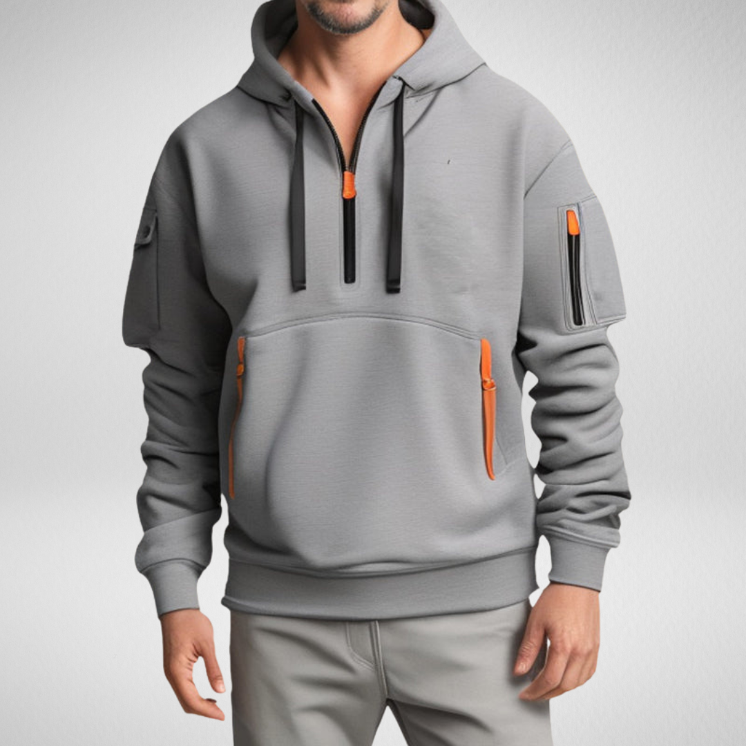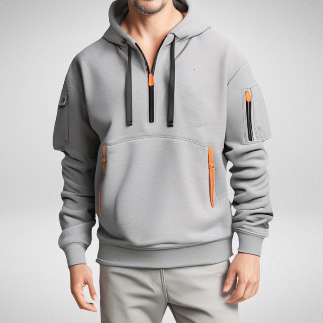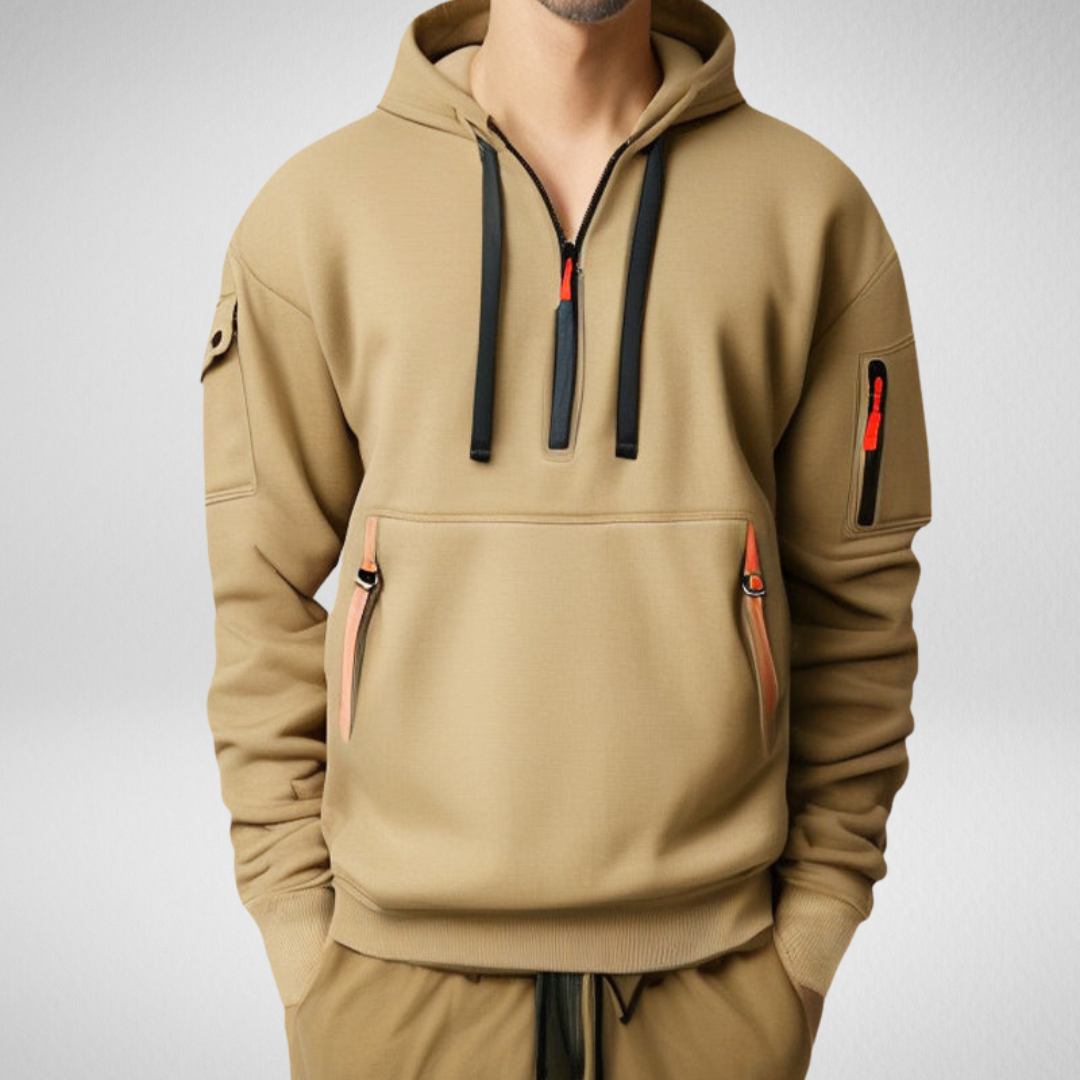 Ta nowoczesna bluza z kapturem i półzamkiem to połączenie funkcjonalności i modnego wyglądu. Wykonana z wysokiej jakości, oddychających materiałów, zapewnia wygodę przez cały dzień. Minimalistyczny design i praktyczny suwak sprawiają, że idealnie nadaje się na każdą okazję – od spacerów po mieście po codzienny styl casual.