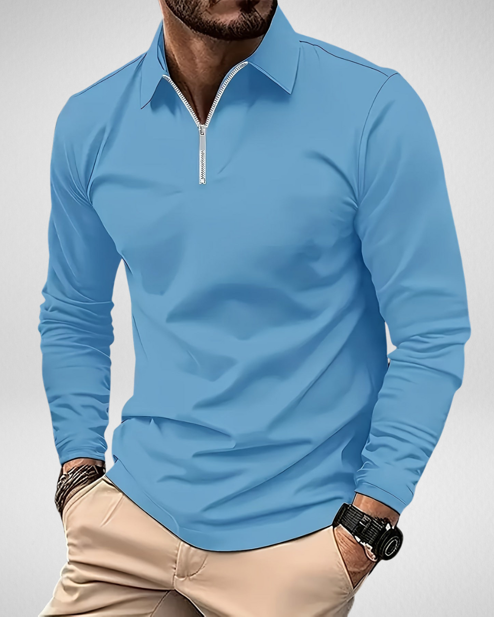 Dodaj odrobinę elegancji do codziennych stylizacji dzięki tej męskiej koszuli z długim rękawem i zamkiem pod szyją. Wykonana z miękkiego, oddychającego materiału, zapewnia komfort przez cały dzień, niezależnie od okazji. Doskonała na co dzień, do pracy lub na spotkania w luźnym stylu.