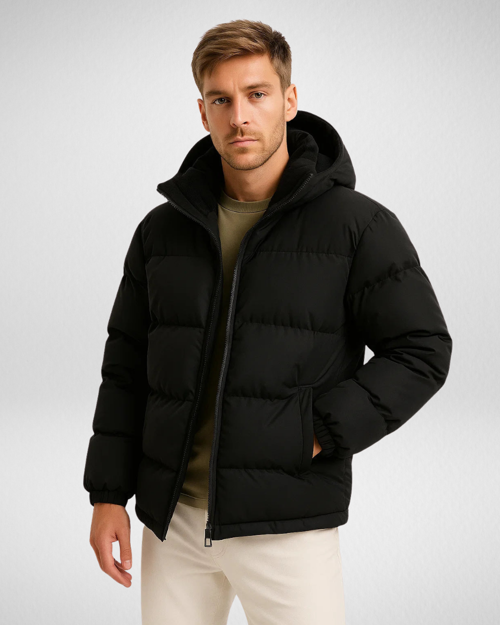 Męska Pikowana Kurtka Zimowa z Kapturrem
