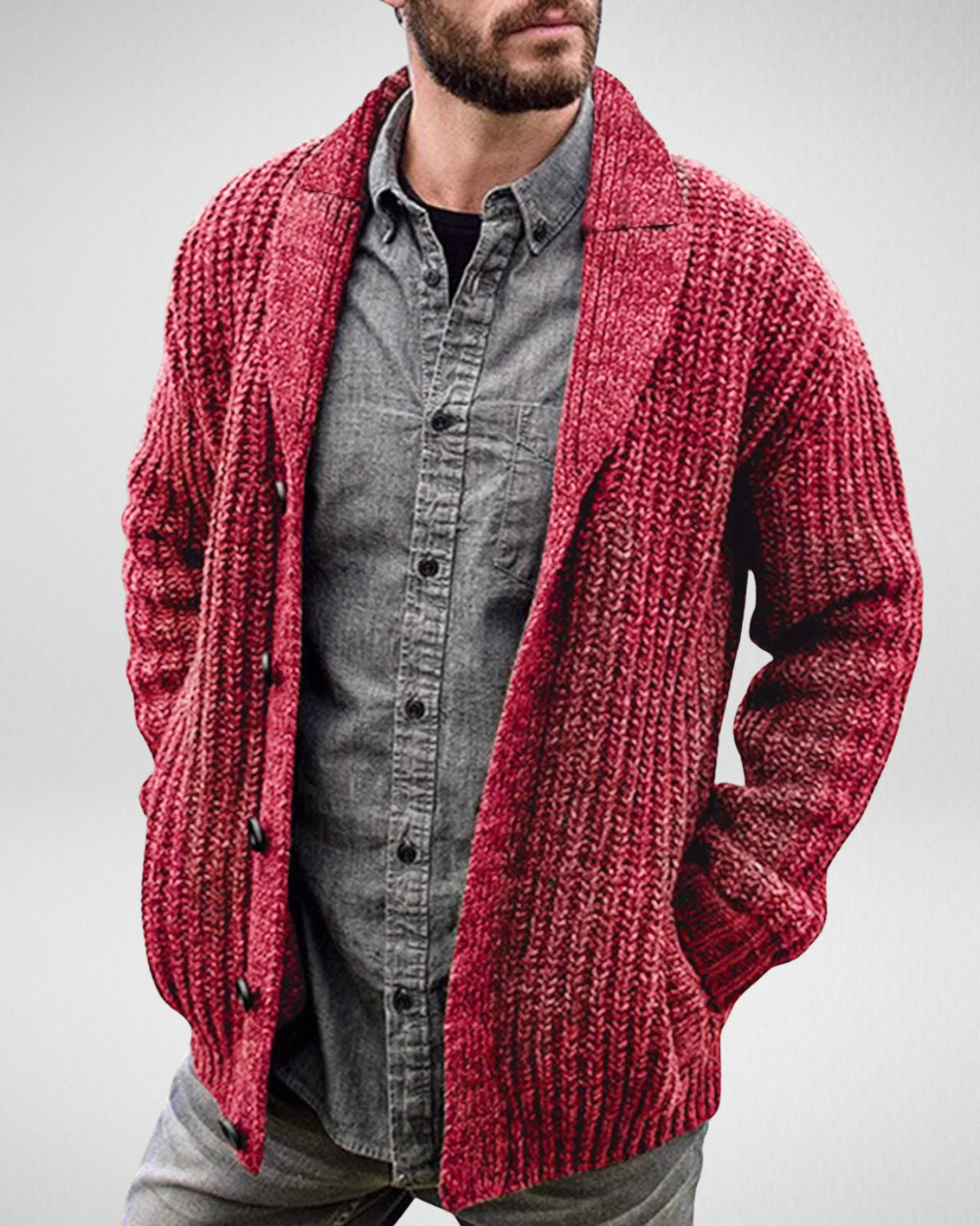 Ten wygodny sweter męski zapinany na guziki łączy ponadczasowy styl z praktycznymi detalami. Wykonany z miękkiego, przyjemnego materiału, zapewnia ciepło i swobodę ruchów. Idealny na chłodniejsze dni – świetnie sprawdzi się zarówno na co dzień, jak i w elegantszych, warstwowych stylizacjach.